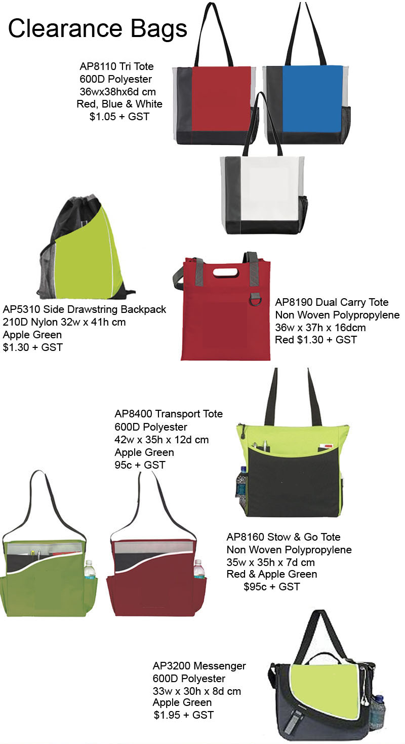 Clearance Bags - from 95c + GST