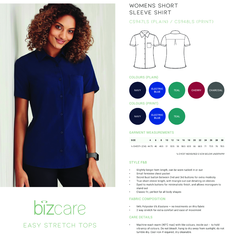 CS947LS Bizcare Womens Short Sleeve Top