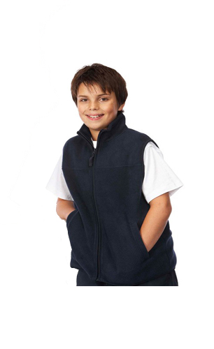 100% Polyester, Low Pill Polar Fleece. Zip Through Vest.