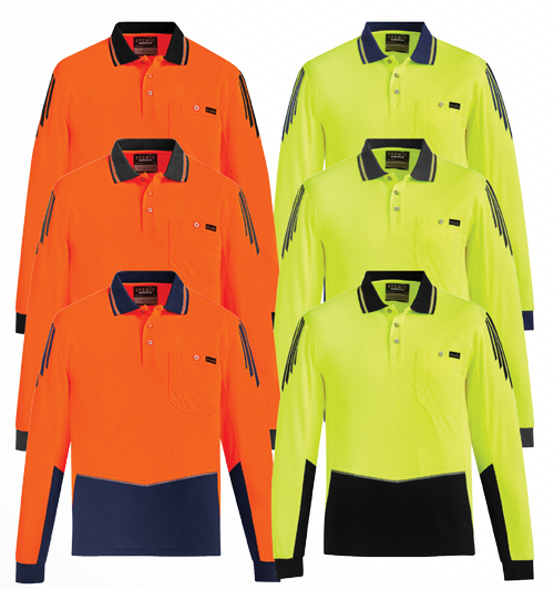Unique Hi Vis compliant stretch mesh runs down the side panel and under sleeve for extreme breath ability in hot conditions, Moisture wicking, Quick dry, Chest pocket, Contrast print on the shoulder.