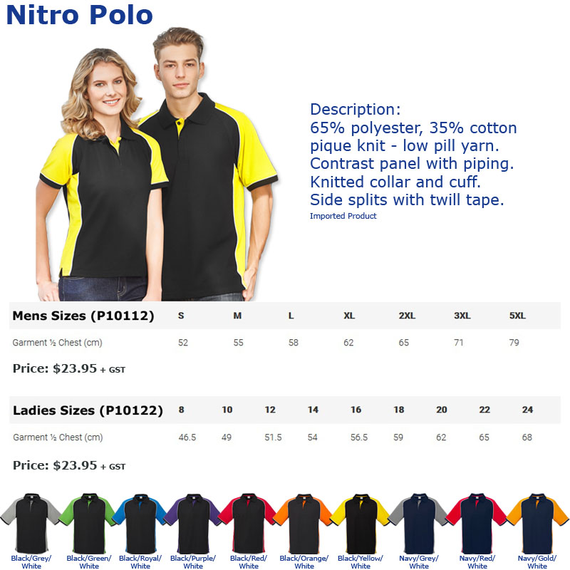 P10112 Polo Shirt Nitro Biz Collection 65% polyester 35% Cotton Pique