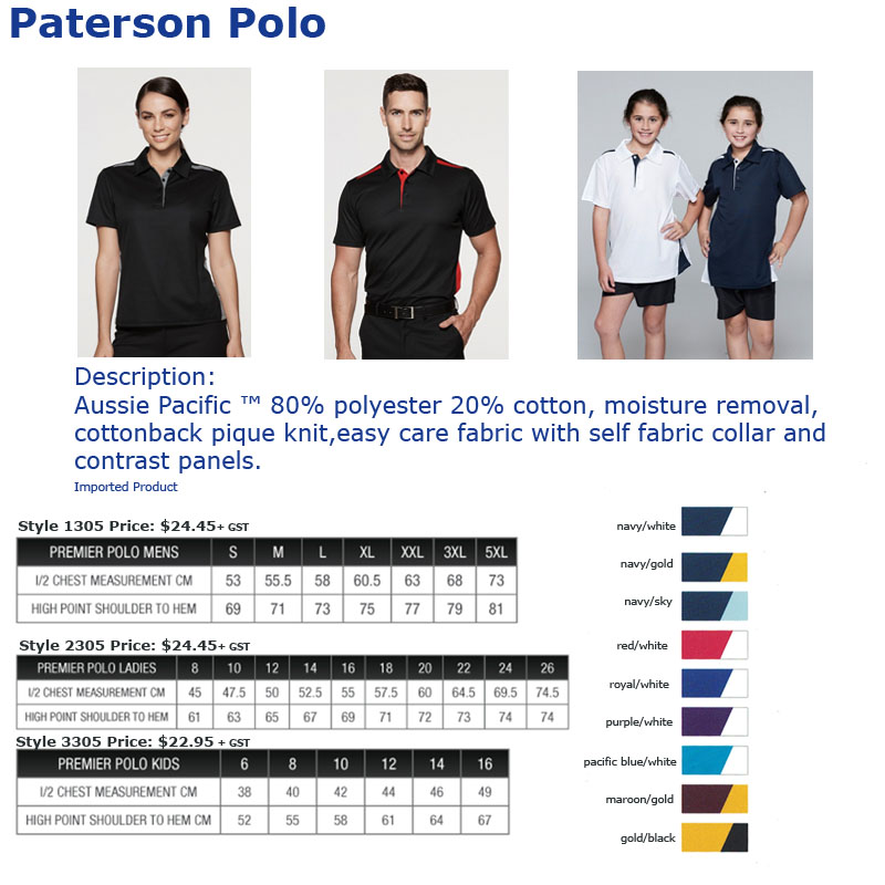 3305 Paterson Polo Cotton Backed From $22.95 + GST