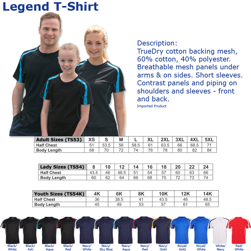 Tshirt Legend Winning Spirit TS53 Cotton Backed Sports Mesh