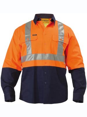 Details: BT6458 3M Taped Hi Vis Drill ShirtTwo Tone, 3M Reflective Taped H Pattern, Long Sleeve, Durable 100% Cotton. Code BT6458Colours Orange/Navy, Yellow/NavySizes S-6XL