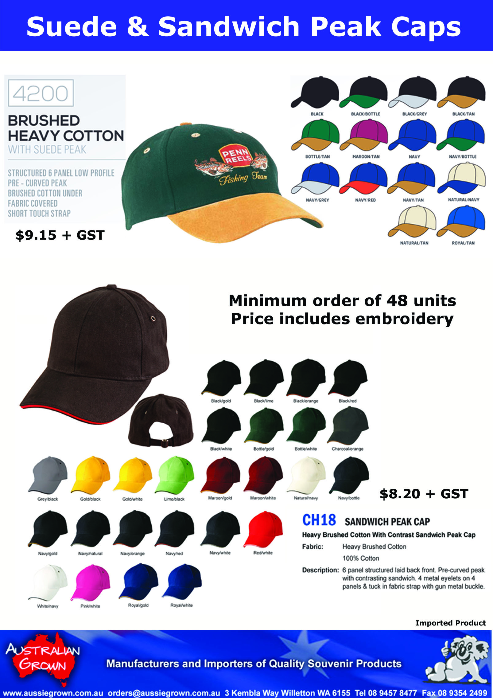 4200 Suede Peak and CH18 Sandwich Peak Caps, many more styles to choose from.