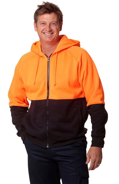 Hi Vis 2 Tone Fleecy HoodieSW24Fleecy Hoodie with full zip, Two hand warmer pockets, Ribbed cuffs and waistband.
