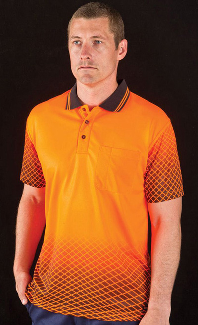 Details: Hi Vis Net Sub Polo JB's6HVNSClassic Fit Work Polo, Sublimated Print & Contrast Collar Stripes.100% Polyester, Set in Sleeves, Quick Drying, Easy Care.Code 6HVNSColours Lime/Black, Orange/Black.Sizes XS-5XL