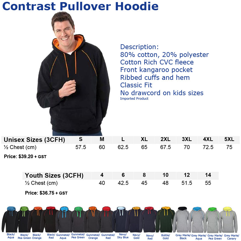 3CFH Hoodie Contrast Trim JBs Wear 80% Cotton 20% Polyester Fleece