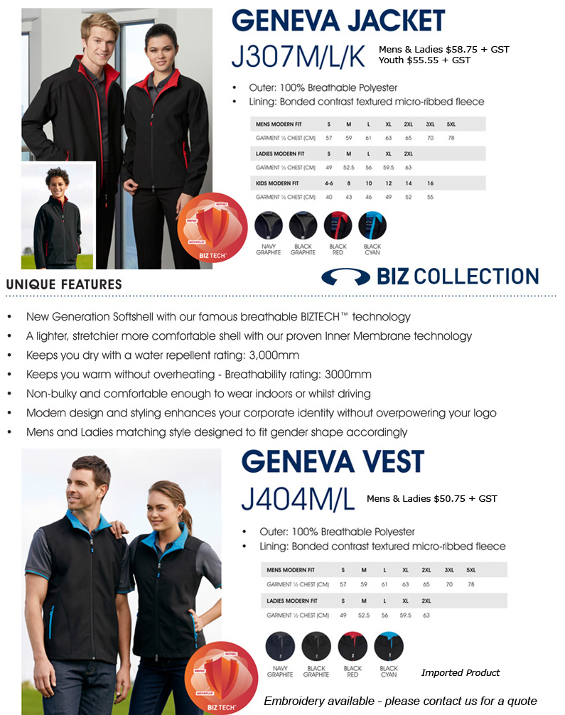 J307 & J404 Biz Collection Geneva Soft Shell Jacket & Vest