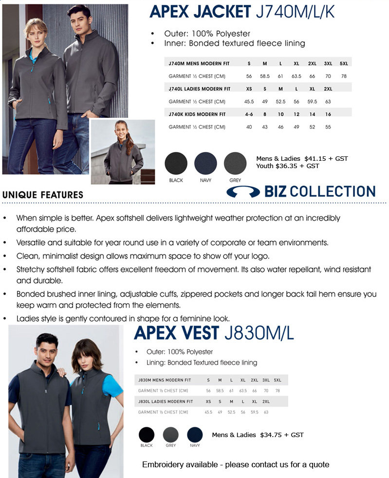 J740 & J830 Biz Collection Apex Soft Shell Jacket & Vest