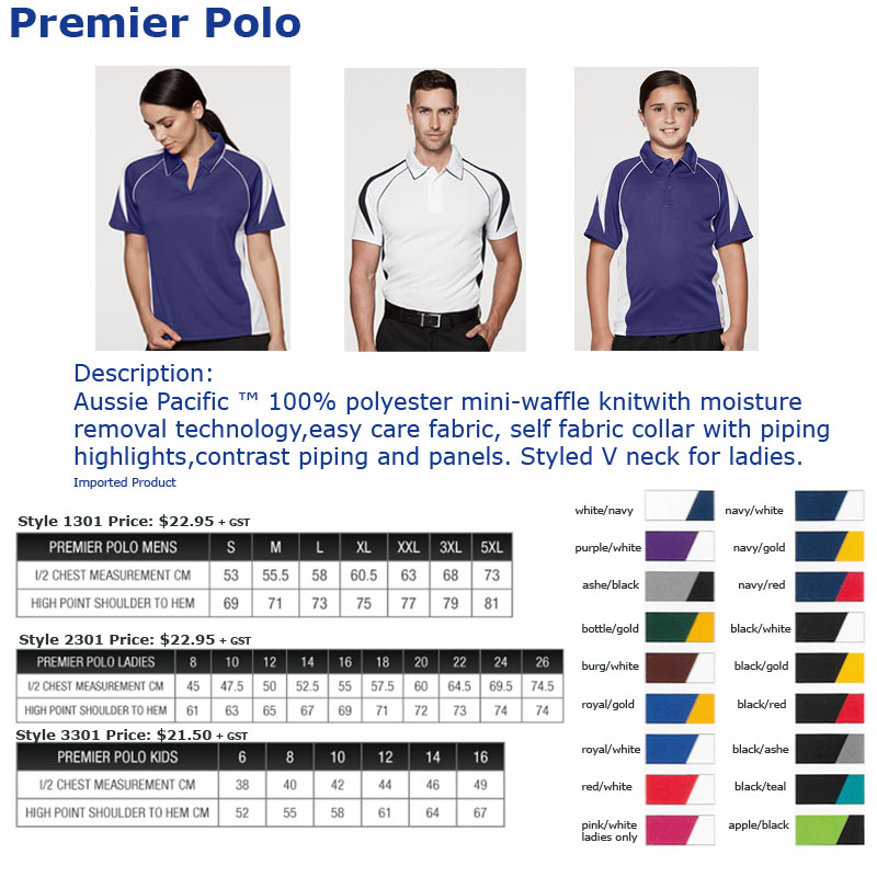 Polo Shirt Premier Aussie Pacific 3301 Polyester Mini Waffle