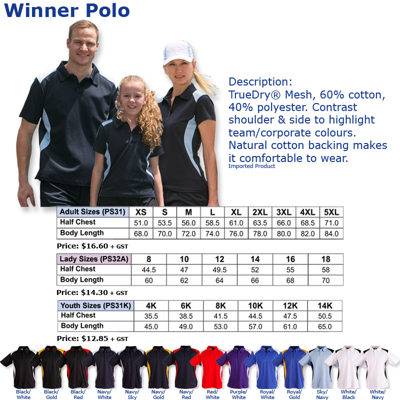 Polo Shirt Winner Winning Spirit PS31 60% cotton 40% polyester