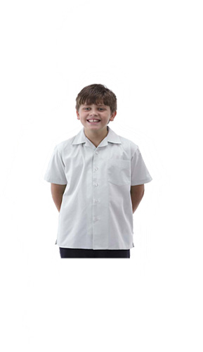 65% Polyester 355 Cotton Poplin. Comfort Fit with Flat Collar. Easy Care.