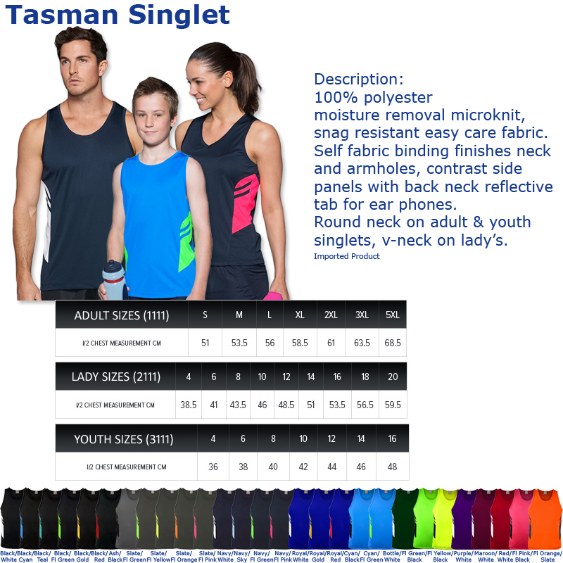 Singlet Tasman Aussie Pacific 1111 100% Polyester Micro Knit