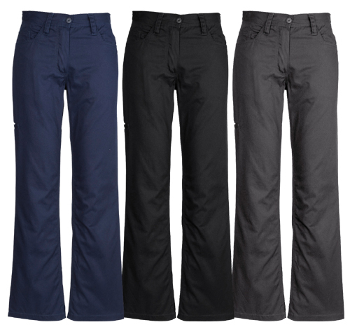 Feminine Fit, Reinforced double layer heel and pockets, Wide belt loops, Triple stitched seams, Discrete side welt pocket.